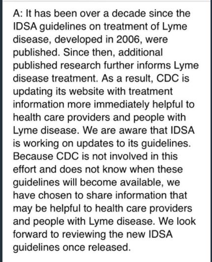 Good–CDC concedes there is “newer published research” beyond the 2006 IDSA guidelines. The Lyme community has been saying that for years—while the CDC seemed to resist even acknowledging that fact.