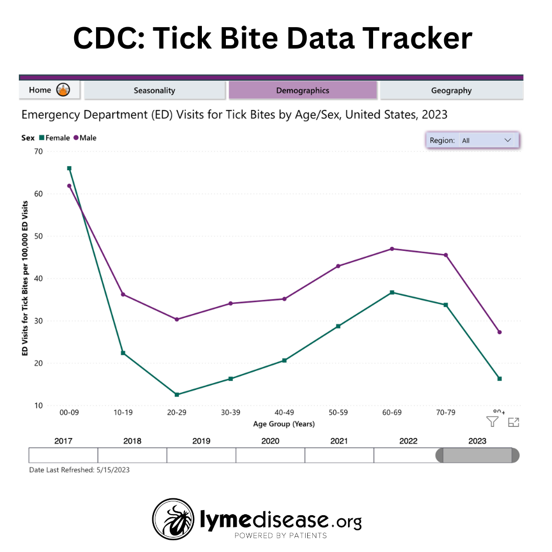 While the Tick Bite Data Tracker age/sex statistics may change by the end of the year, the visual of the May 2023 peak is really quite astonishing!