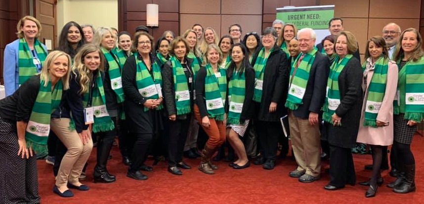 The next day, advocates fanned out to meet with their Senators and Congressional representatives (or, more often, with key staff members). Armed with talking points and packets of information to distribute, we walked the halls in our bright green neck scarfs. (Such identifiers have become a “thing” in grassroots lobbying efforts these days. I found my scarf was a real conversation starter when standing in the security screening lines!)