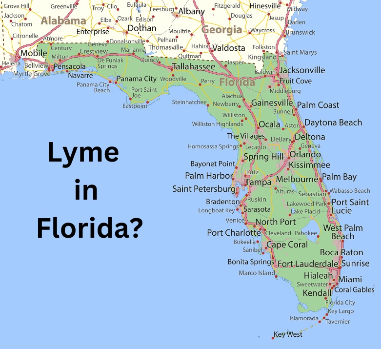 - Kerry Clark, PhD has documented Lyme Borrelia in two human biting ticks in Florida (blacklegged ticks and lone star ticks). See: Borrelia species in host-seeking ticks and small mammals in northern Florida. Multiple species of Lyme Borrelia have been detected in human patients in Florida using sensitive molecular methods. Infection with species/strains other than those the traditional tests are designed to detect may contribute to negative test results. See e.g.