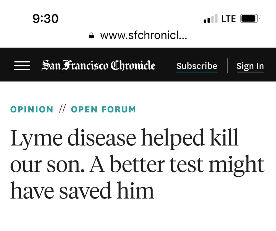 Blessedly, we did not have the sorrowful outcome that the Luis family must bear. But years of pain and suffering could have been avoided with better testing and more doctors who are trained to recognize and treat tick-borne infections.