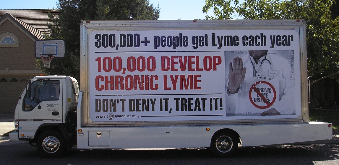 People with Lyme and their advocates will stage a demonstration at Moscone Center South, 747 Howard Street, on Saturday, October 5, from 11 am to 2 pm. The above-pictured mobile ad truck will circle the conference center eight hours per day through Saturday.