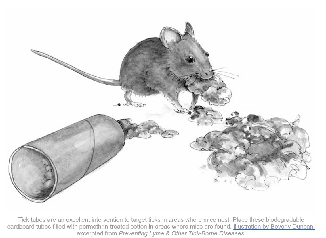 As the snow melts outside my window, now is the time to make or purchase tick tubes. Tick tubes are an excellent intervention to target ticks in areas where mice nest.